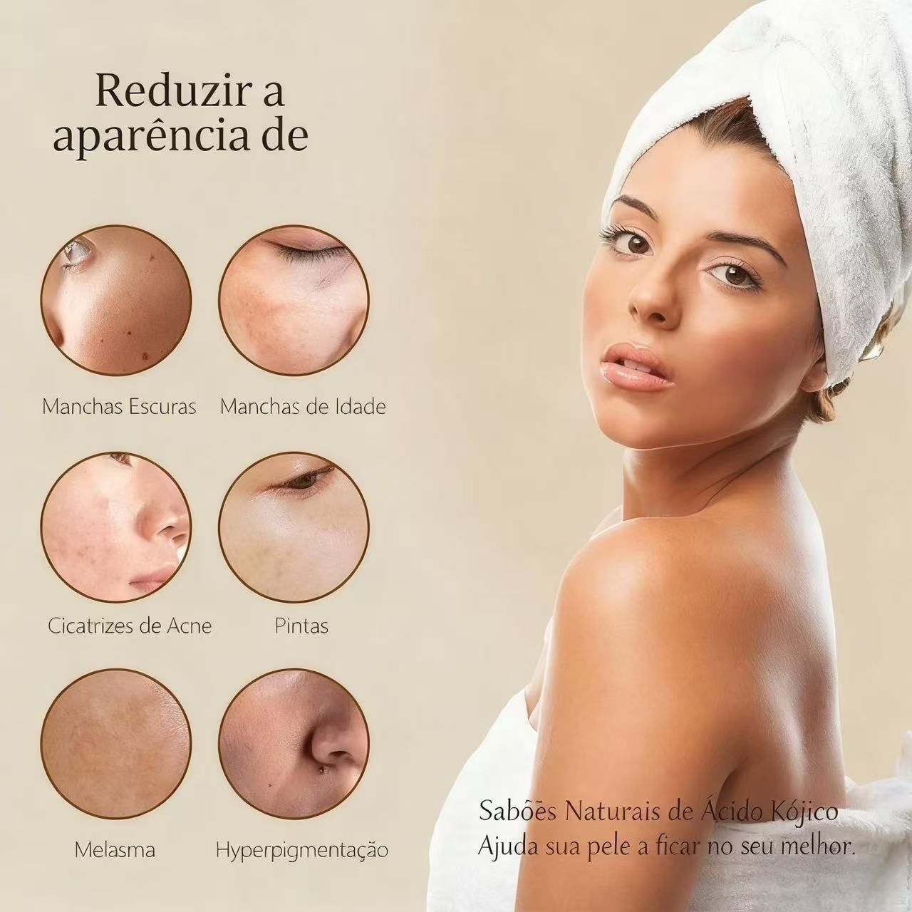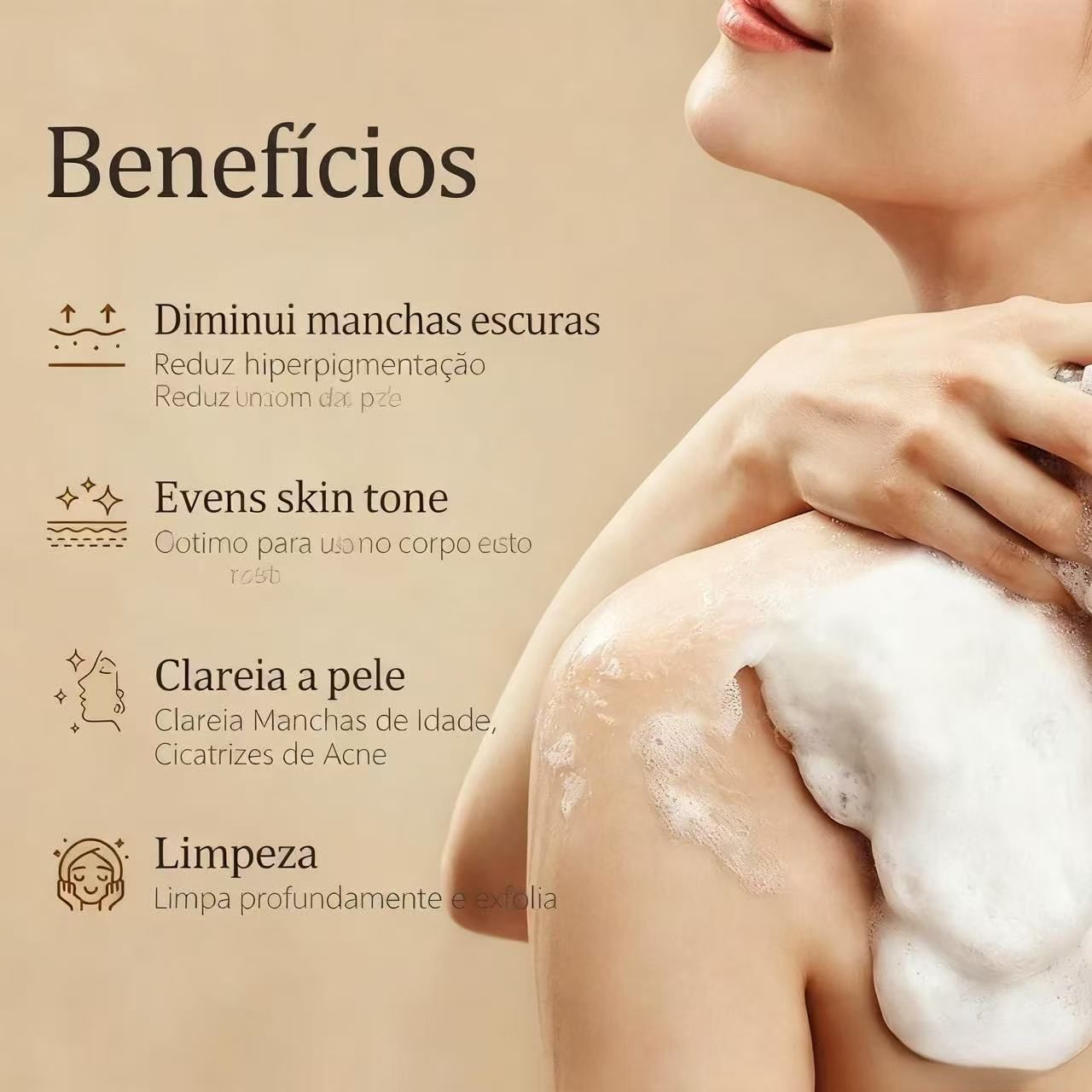Não deixe opacidade e manchas atrapalharem sua autoestima💃! Agora, leve para casa o Sabonete Clareador de Cúrcuma e Ácido Kójico🛒, diga adeus à “pele com imperfeições”❌ e seja confidente ao sair sem maquiagem, tornando-se a presença mais brilhante!🌟