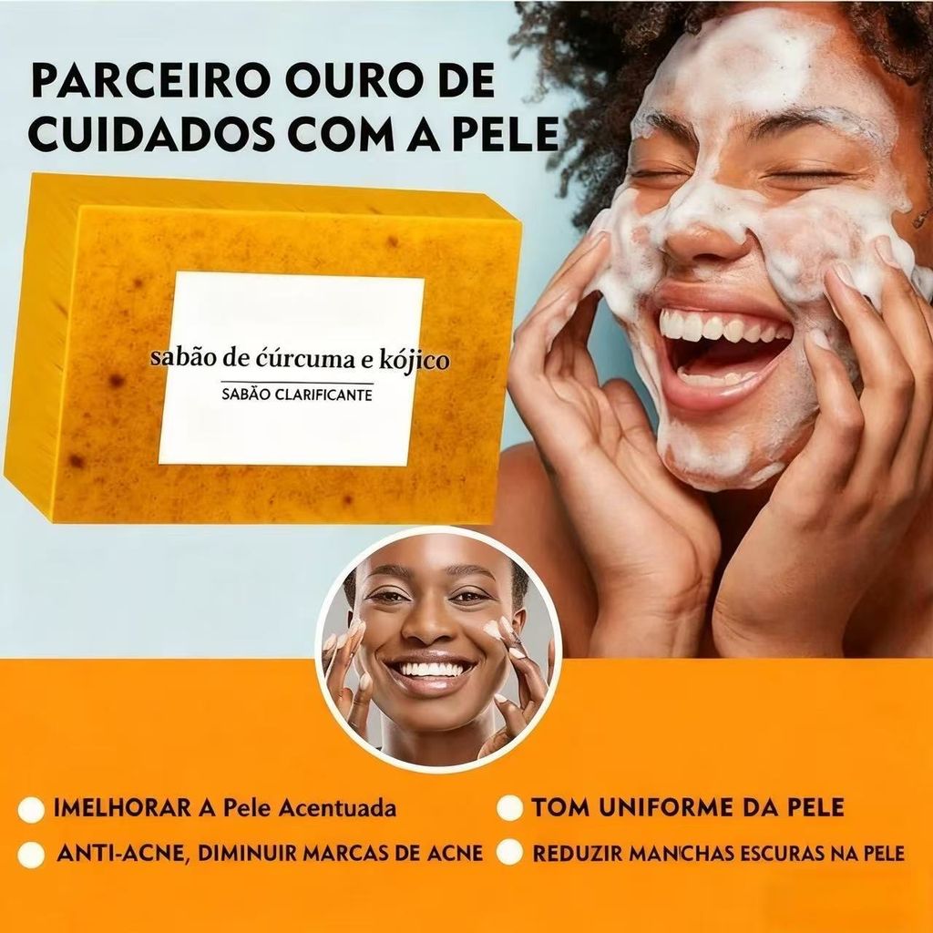 💫 Sabonete Clareador de Cúrcuma e Ácido Kójico ✨ | Manchas Escuras🚫, Cicatrizes de Acne🙅♀️ e Desigualdade de Tom🙅♂️ Sumem, Pele Brilha como a Luz!🌟