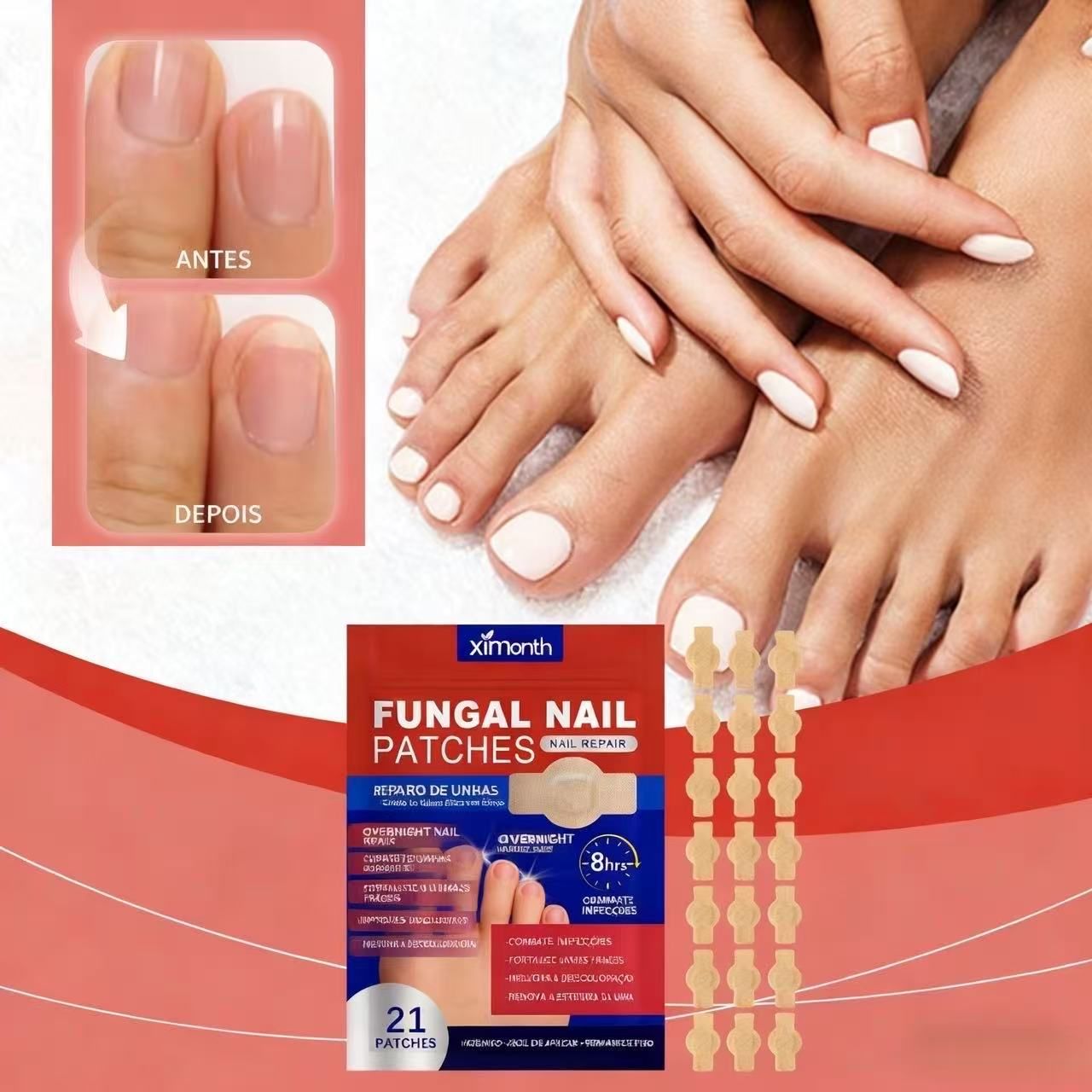 O Parche Reparador de Ungue Oníco Ximonth chega com 92% de taxa de inibição de fungos ✅ comprovada! Testado em laboratório 🔬, seu ingrediente antibacteriano principal é especializado em combater fungos resistentes sob a unha. Por 8h à noite 🌙, penetra profundamente na matriz ungueal — como um "SPA antibacteriano" para unhas 🧖♀️, dominando o ambiente do fungo e eliminando o ungue oníco na raiz!