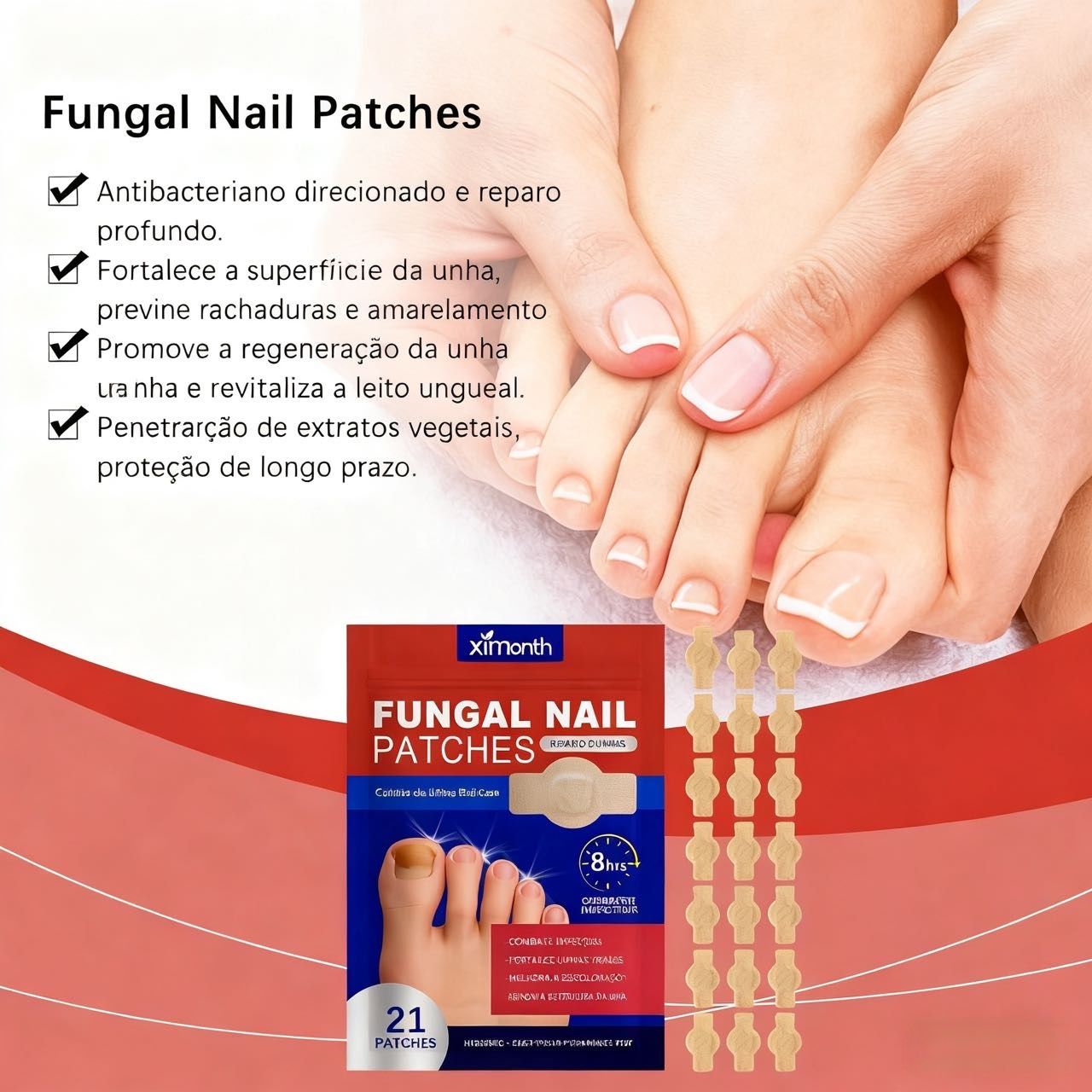 1 parche por noite, exatamente o suficiente para o ciclo de crescimento da unha. Sem trocas frequentes — com persistência, unhas saudáveis crescem gradualmente!